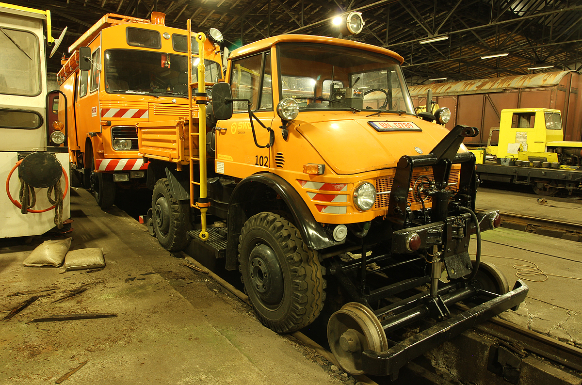 Zweiwege Unimog der SWB im Rheinischen Industriebahnmuseum Köln während der langen Museumsnacht am 04.11.2017