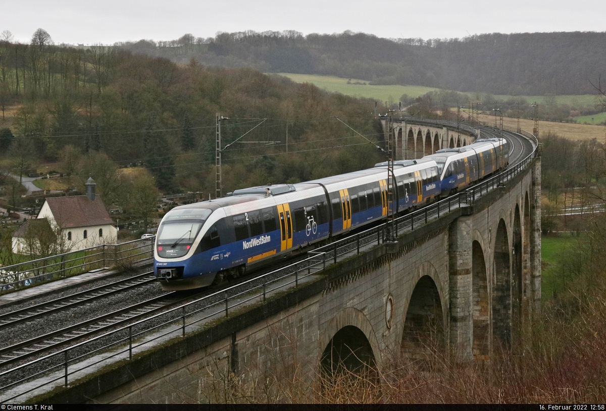 Nachschuss auf 643 347-7 und einen weiteren Bombardier Talent, die den Altenbekener Viadukt befahren.