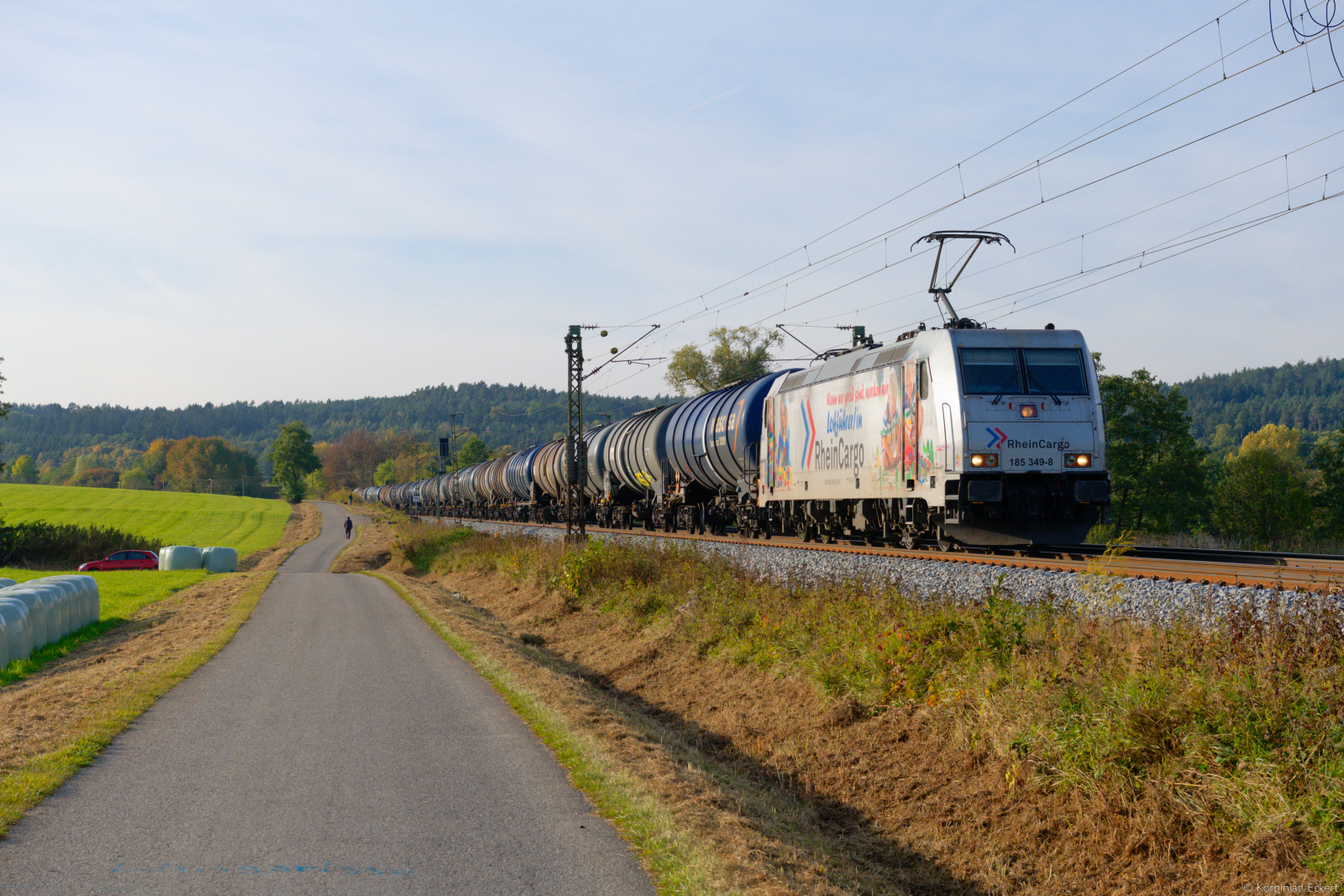 DB Cargo 185 065-0 am 03.05.19 auf der Deutschherrenbrücke in Frankfurt am Main von einen Steg aus fotografiert