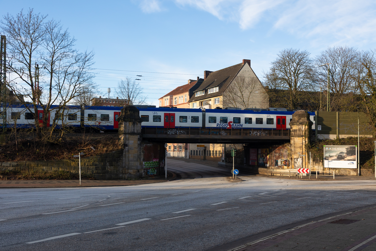 7.5.2011 Bernau bei Berlin. Wegen Einbau eines Fahrstuhls muss der Zugang zum Fernbahnsteig gesperrt werden. Eine Behelfsbrücke zum S-Bahnsteig gewährleistet während der Bauarbeiten den Zugang. Bild zeigt den 1. Versuch des Einhängens durch eine niederländische Firma. Kurz darauf wurde sie wieder entfernt, da lt. Bahnsprecher Ahlert an der Statik der Brücke noch gearbeitet werden müsse und nicht alle notwendigen statischen Überprüfungen vorgenommen werden konnten. Siehe auch https://www.moz.de/artikel-ansicht/dg/0/1/295281