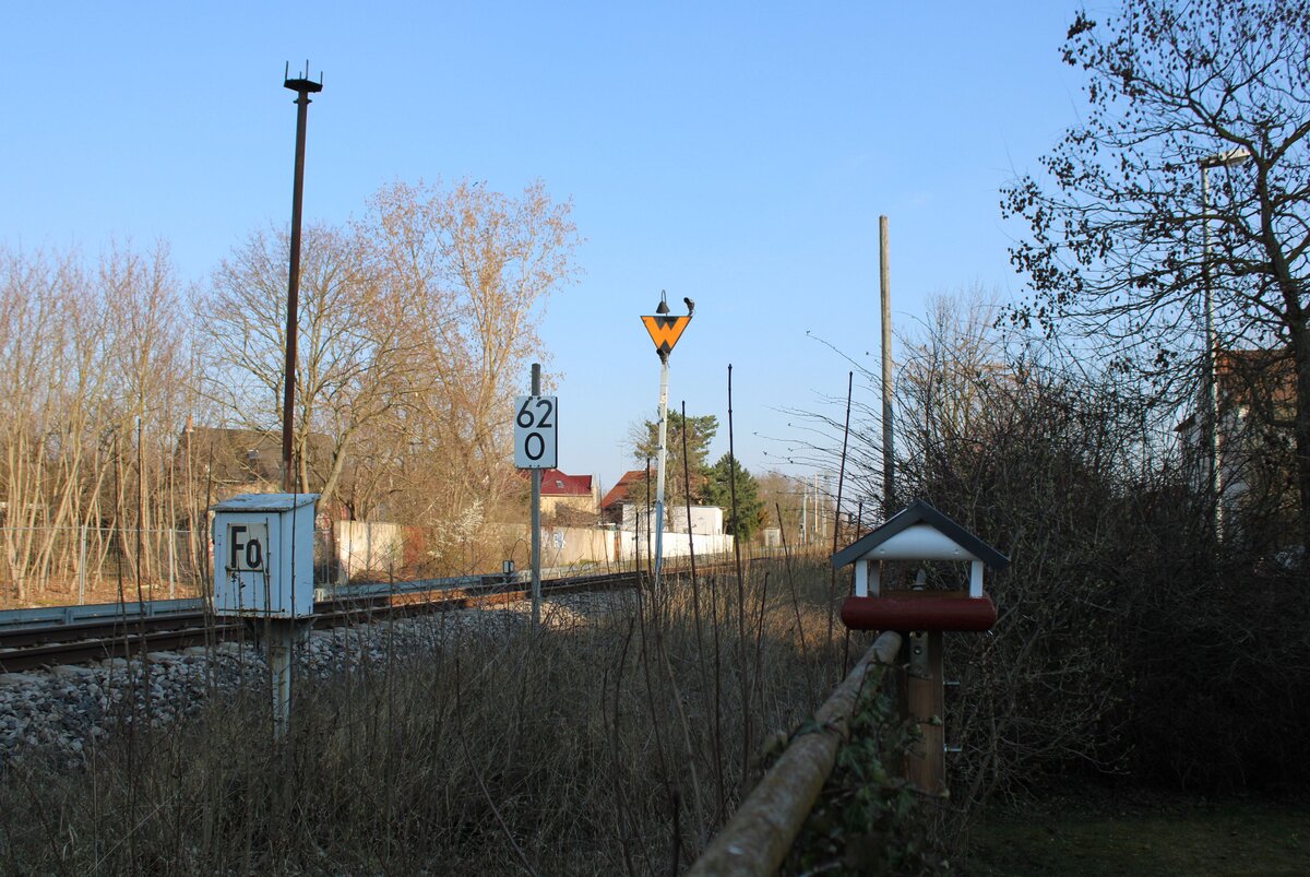 Am Haltepunkt Walpertskirchen museal aufgellte Formsignale. Bayerisches Ausfahrsignal (liks), Ausfahrsignal der Einheitsbauart und Vorsignal der Einheitsbauart (rechts). 25.02.2017