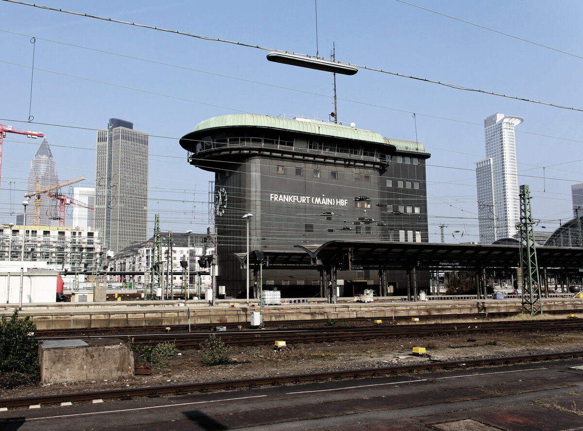 Ein Flirt der HLB, eine Regiotram und 642 144 begegnen sich am 31.10.2025 im Gleisvorfeld von Kassel Hbf. Im Hintergrund ist das 1960 eröffnete Drucktasten-Stellwerk Kpf zu sehen. Es soll bis 2030 von einem ESTW abgelöst werden.