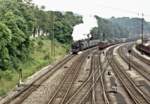 Ein Dampfsonderzug der WFL, gezogen von 03 2155, durchfährt Dessau Hbf unter dem Motto  Volldampf zur Hobbymesse  von Berlin nach Leipzig.