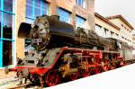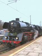 Ein Dampfsonderzug der WFL, gezogen von 03 2155, durchfährt Dessau Hbf unter dem Motto  Volldampf zur Hobbymesse  von Berlin nach Leipzig.