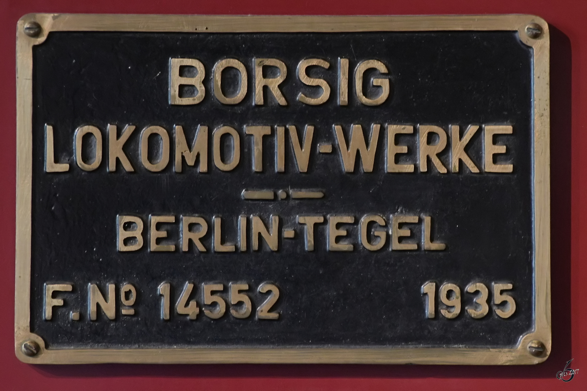 Gusseisernes Schild an der Stromliniendampflokomotive 05 001. (Verkehrsmuseum Nürnberg, Mai 2017)