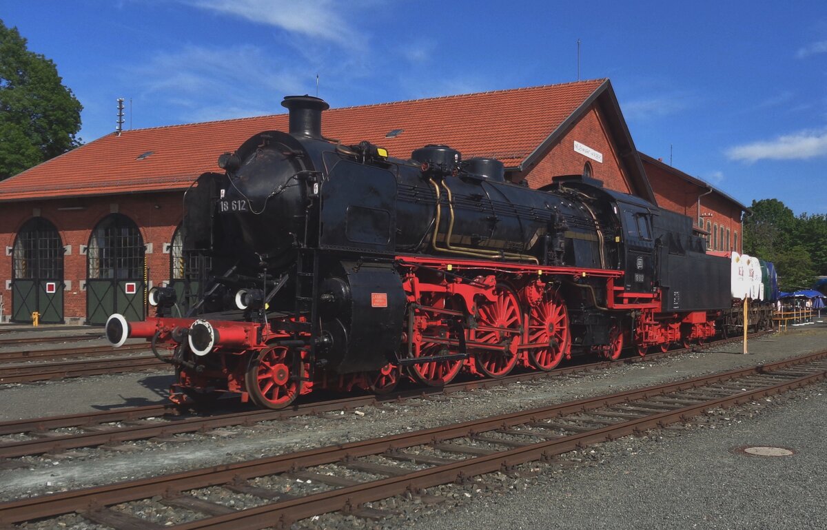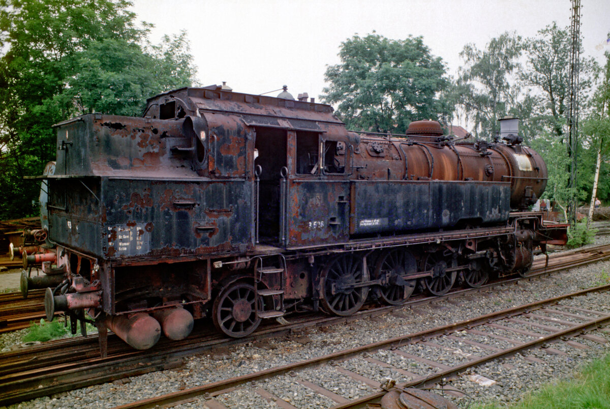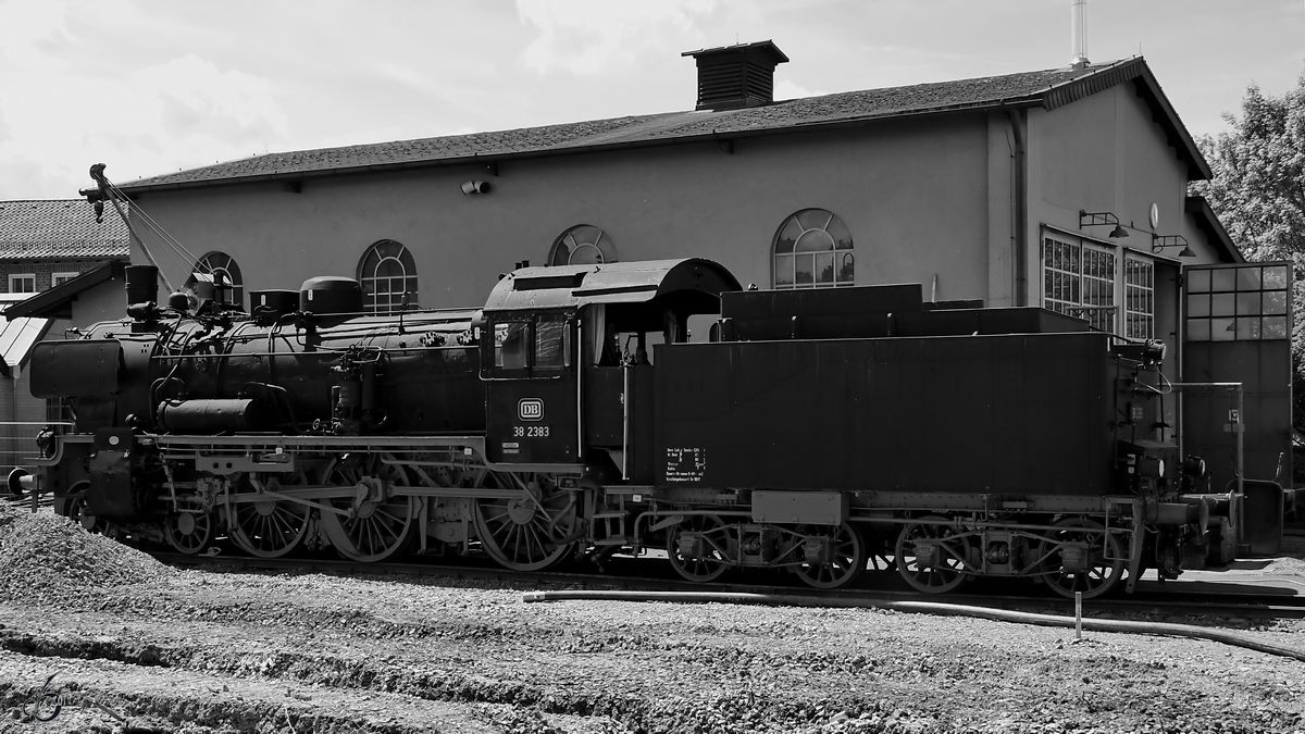 Die 1919 gebaute Dampflokomotive 38 2383 ist auf dem Freigelände im Deutschen Dampflokomotiv-Museum Neuenmarkt-Wirsberg abgestellt. (Juni 2019)