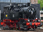 ie 1929 bei Hohenzollern gebaute Güterzugtenderlokomotive RAG D-724 "9" wurde ursprünglich als 80 030 an die Deutsche Reichsbahn-Gesellschaft übergeben. (Eisenbahnmuseum Bochum, April 2025)