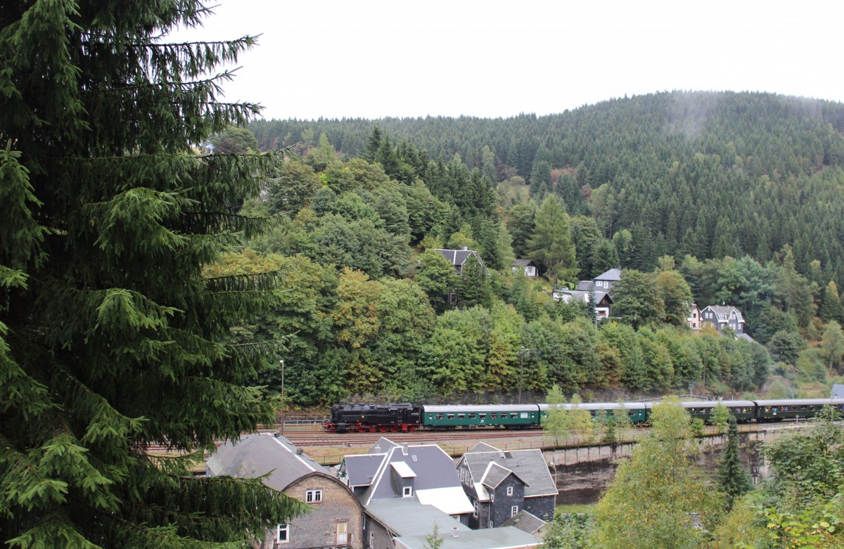 Am 15.09.13 war die 95 027 wieder in ihrer alten Heimat. Hier die Einfahrt in Lauscha.
