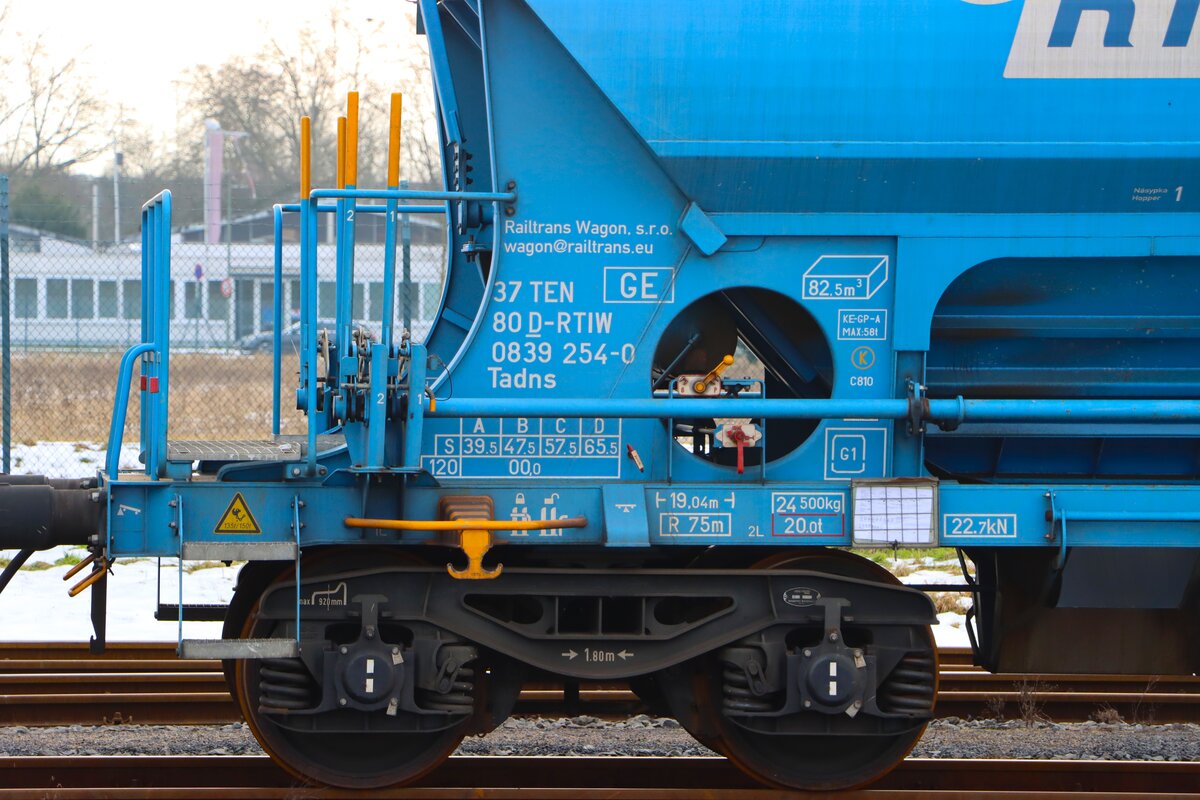 ERC.D GmbH Kuppelwagen CH-CBB 51 85 22-94 164-1 Bimz am 31.01.2026 im Bahnhof Kitzingen. Der Waggon ist für 200 km/h und den Verkehr in Deutschland, Österreich sowie der Schweiz zugelassen. Außerdem darf das Fahrzeug trajektiert werden.