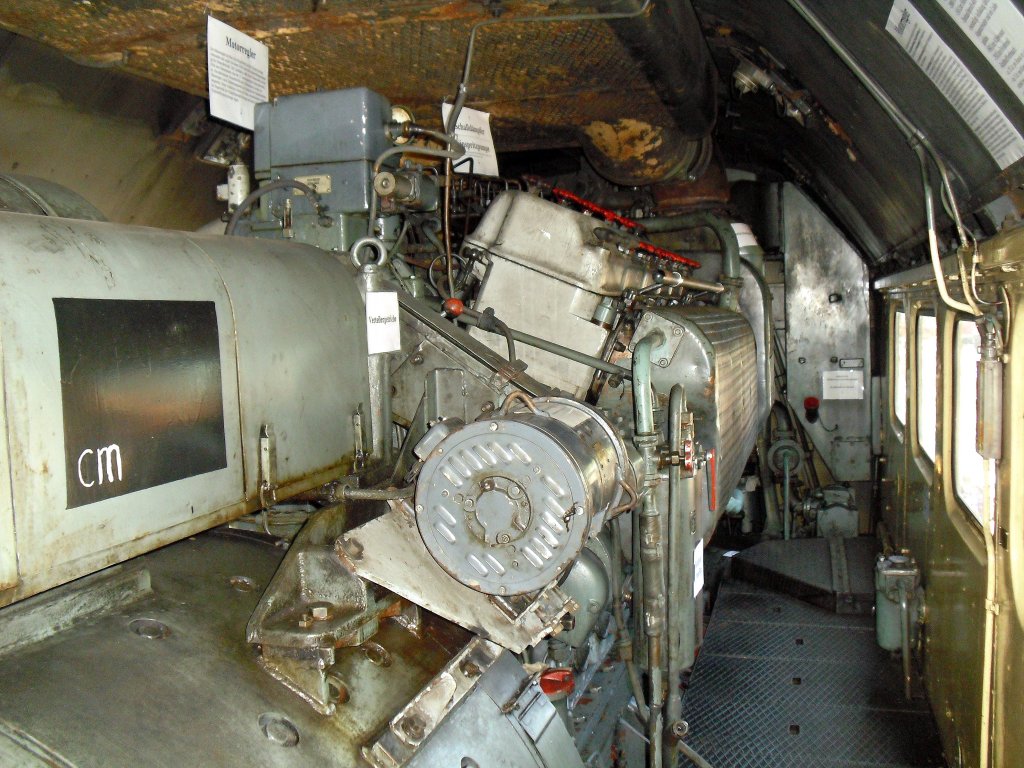 Der Zwölfzylinder V-Motor (14 D 40) der 120 274-6 am 11.09.2011 im Bw Berlin-Schöneweide.
