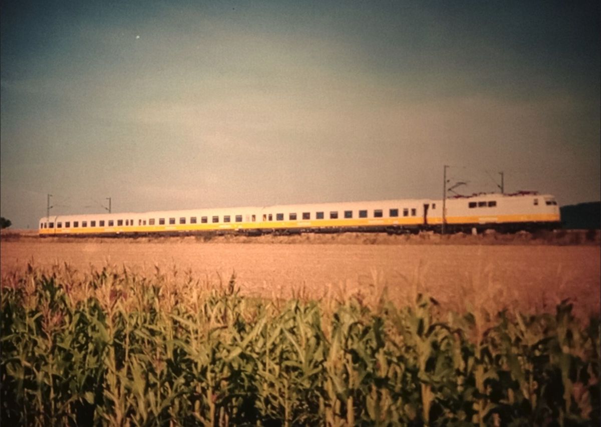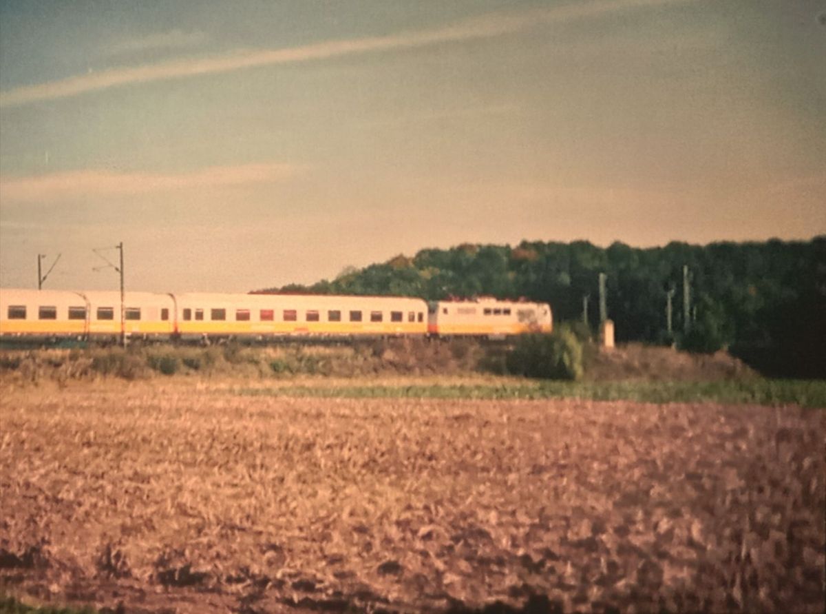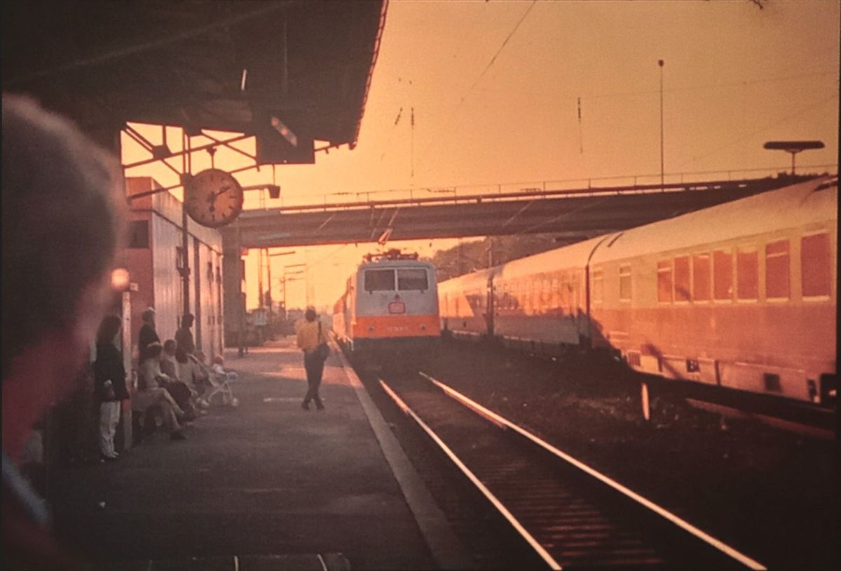28.09.1990 letzte Foto nach der Streckenwanderung abends 18 h 10 min. 111 049-3 mit LH 1026 im Gl.2 IC 690 durch abends 18h10min 111 049-3 mit LH 1026 im Gl.2 IC 690 durch