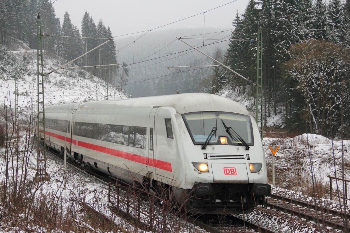 Die aus diesem Anlass beklebte ex-Metropolitan-Garnitur unternimmt mit 101 130-3 die letzte reguläre Fahrt als ICE 1051 nach Berlin (Hamm  Hbf, 10.12.2021)