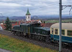 Die ehemalige RWE Frimmersdorf Lok 2 zieht den Museumszug durch Köln Ossendorf in Richtung Frechen.