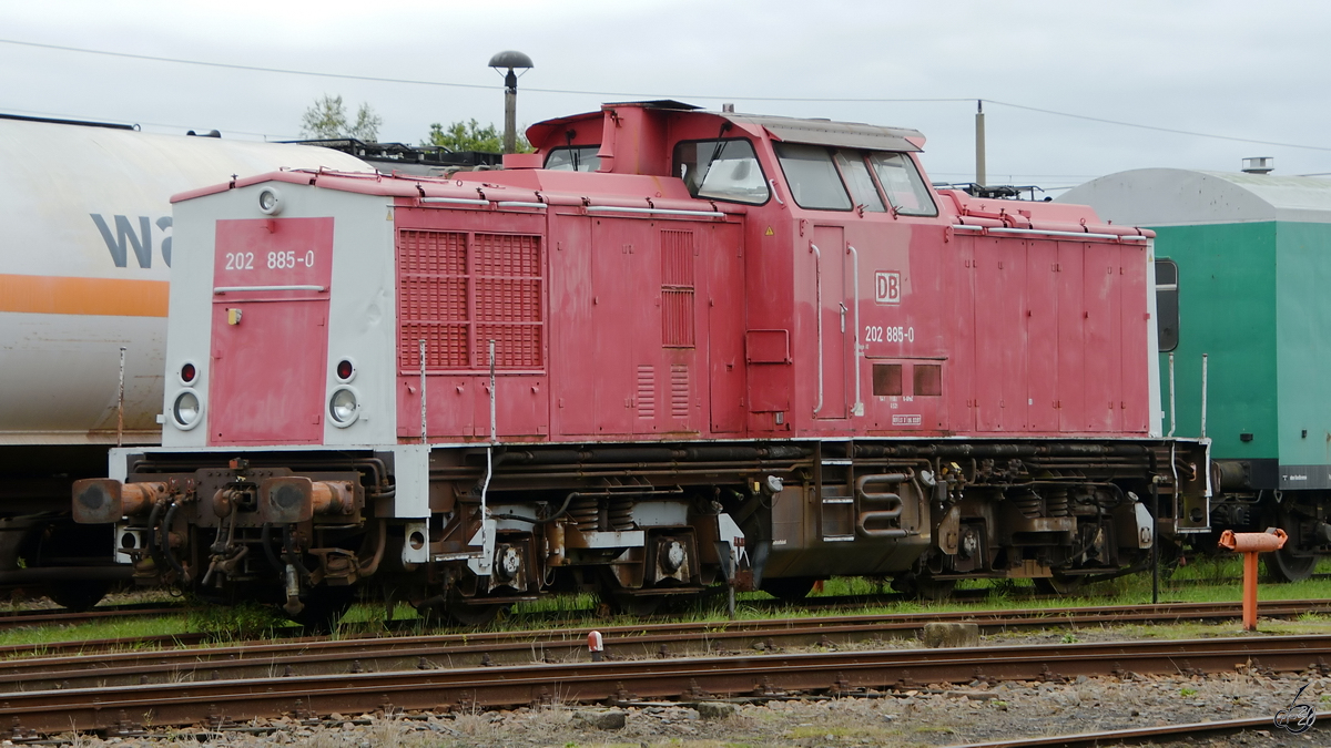 Die Diesellokomotive 202 885-0 war im September 2020 auf dem Gelände des sächsischen Eisenbahnmuseums Chemnitz-Hilbersdorf zu sehen.