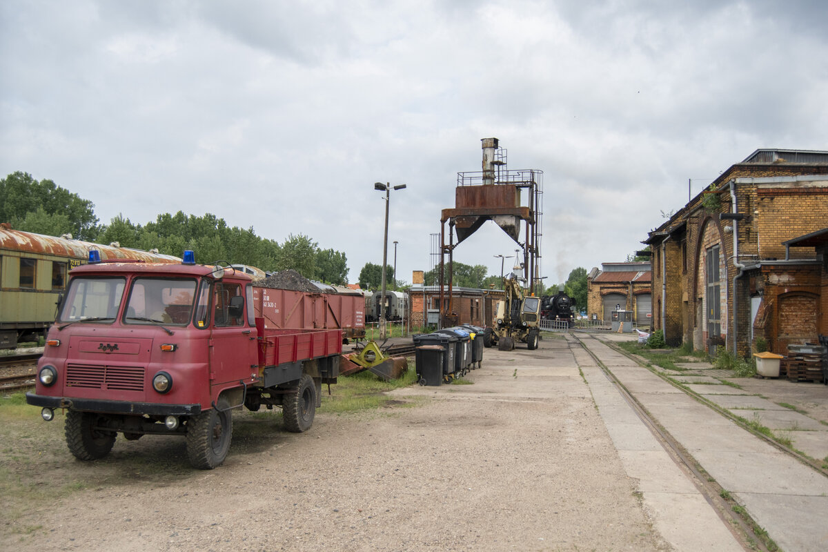 Die Dampflokfreunde Berlin mit 52 8131-6 (90 80 0051 131-5 D-WFL) und ihrem Sonderzug anläßlich des dieses Wochende stattfindenden Frühlingsfestes am ehemaligen Betriebswerk Berlin-Schöneweide bei der 2. Durchfahrt im Bf. Flughafen Berlin-Schönefeld, 21.04.18