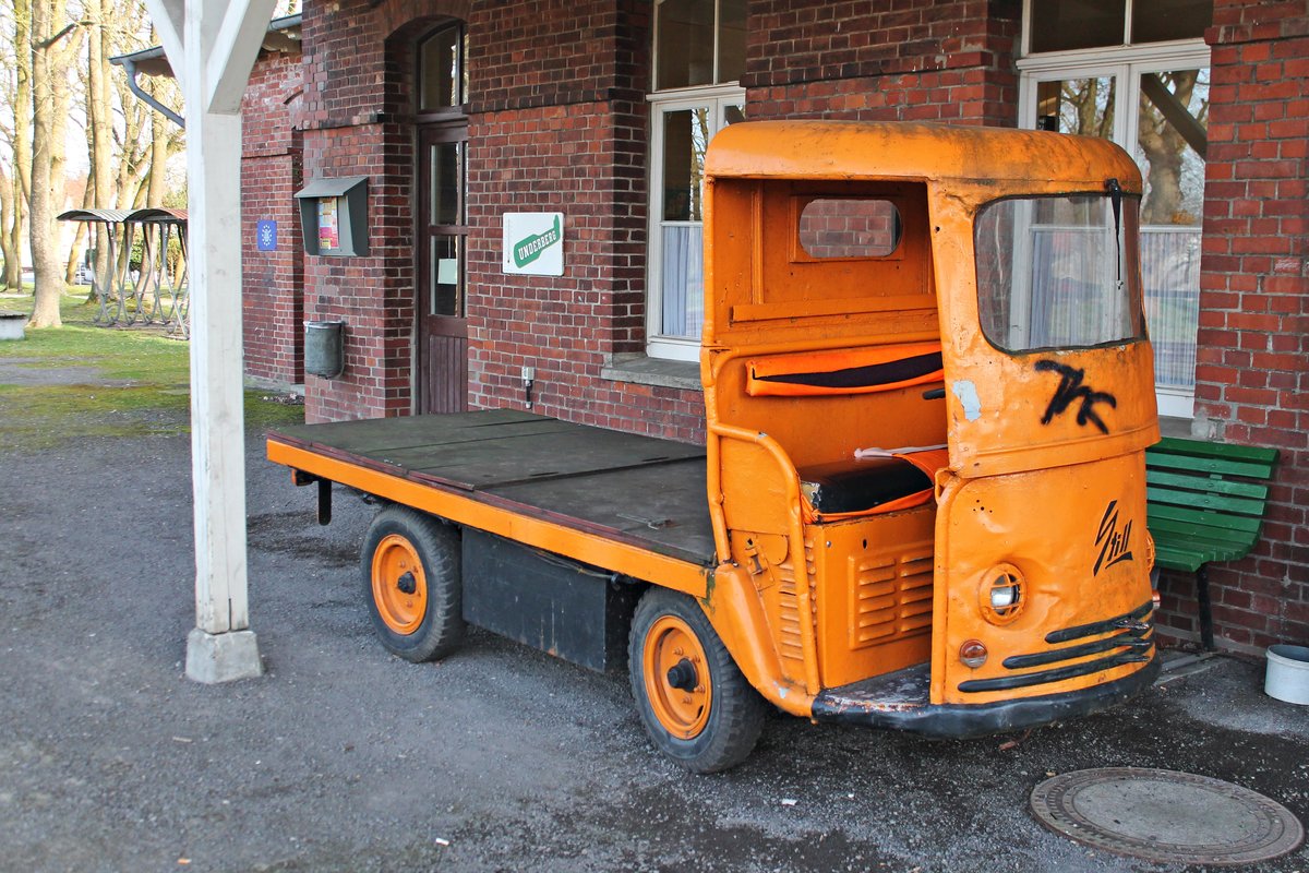Blick auf das Gerippe vom Gepäckwagen der Bauart MDyg 986 mit der Betriebsnummer 50 80 92-40 907-9, als dieser am Nachmittag des 23.03.2019 im Museumsbahnhof von Bad Bederkesa abgestellt stand.