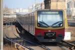 Eine S3 Richtung Erkner mit einer Baureihe 480 bei der Einfahrt in Berlin Warschauer Straße Richtung Erkner im November 2025