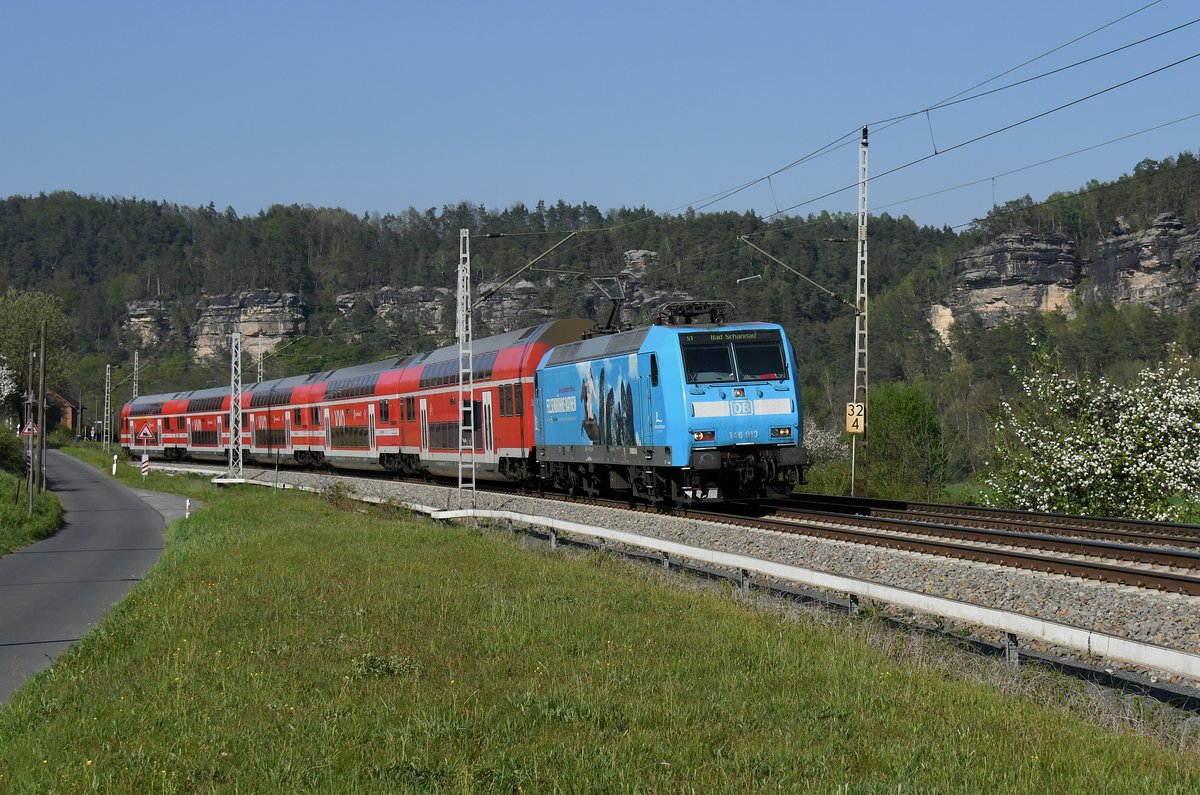 146 013 am 24.04.19 zwischen Rathen und Königstein