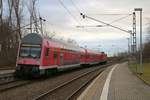Nachschuss auf DABbuzfa 760 mit Zuglok 143 903 der S-Bahn Mitteldeutschland (DB Regio Südost) als S 37739 (S7) von Halle-Nietleben nach Halle(Saale)Hbf Gl. 13a, die den Hp Halle Zscherbener Straße abweichend auf Gleis 1 verlassen. [24.12.2017 | 13:56 Uhr]