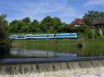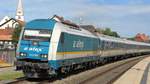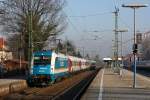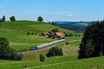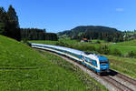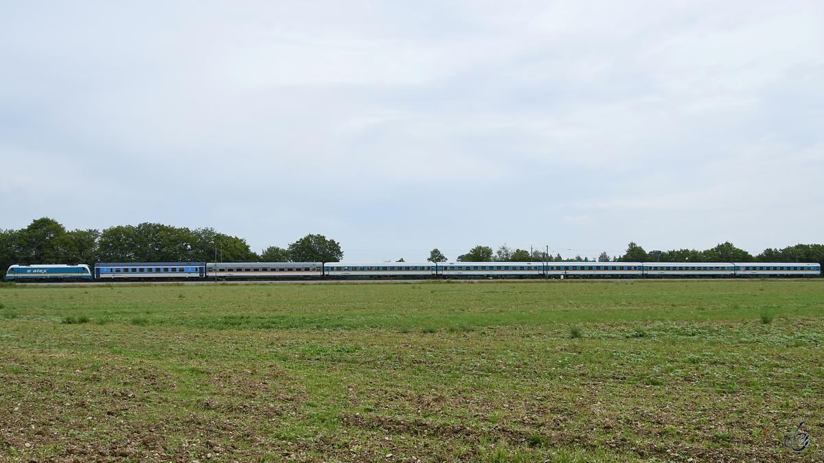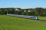 Mitte August 2020 war dieser von der Elektrolokomotive 183 003 gezogene Regionalzug von Alex in Oberschleißheim zu sehen.