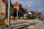 ... mit einfahrendem S-Bahnzug. Im Hintergrund ist der neue Fußgängersteg erkennbar, der das gesamte Gleisvorfeld überspannt, aber vorallem das Neubaugebiet 'Arnulfpark' mit vielen großen Bürohäusern an die S-Bahn anschließt.