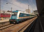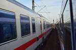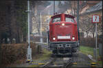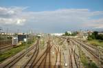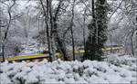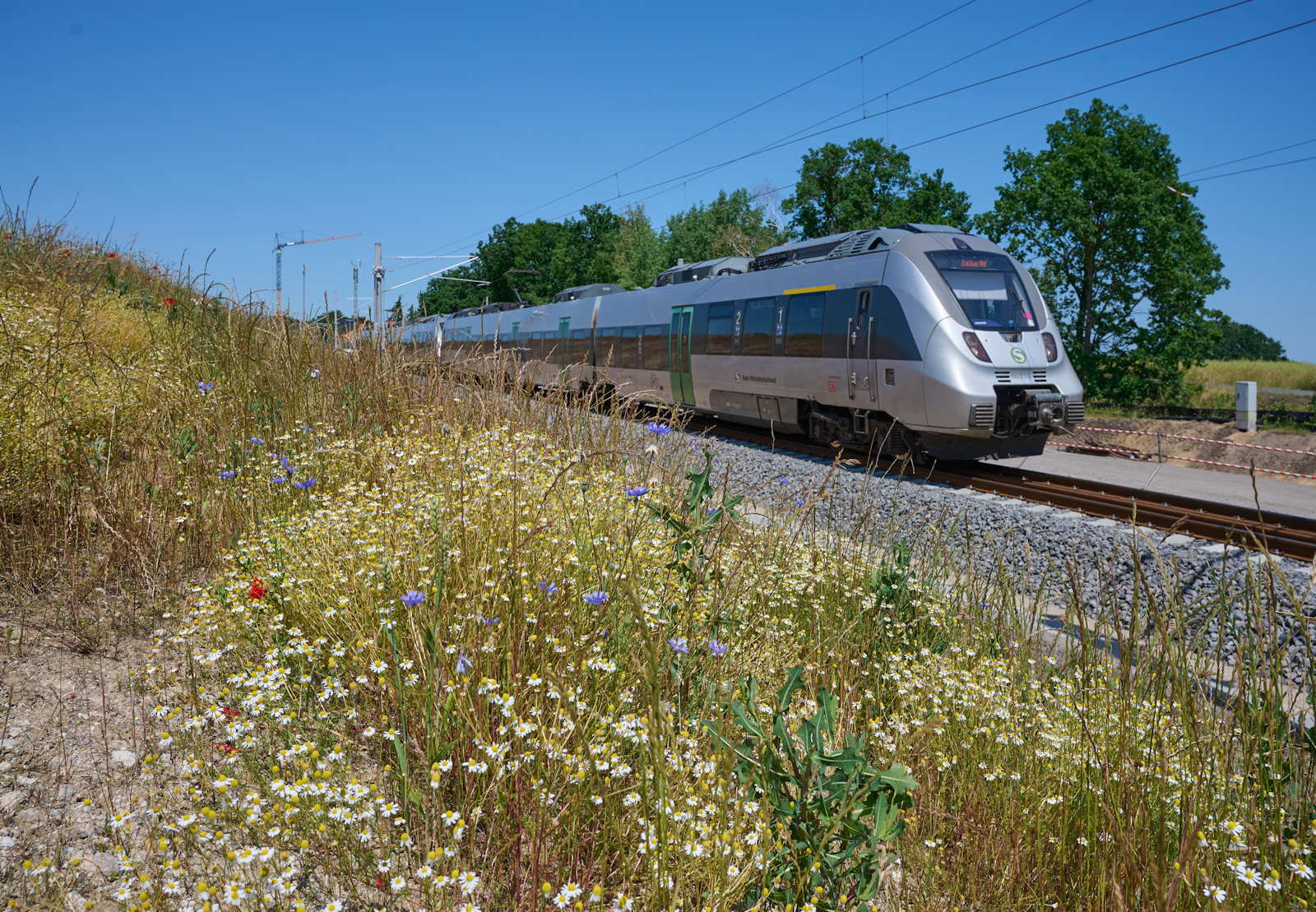 Etwas grün mit Bäumen zwischen den Gleisen.