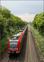 Ein S-Bahnzug auf der Linie S2 in Fahrtrichtung Stuttgart bei Kernen-Rommelshausen.