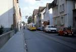 Rechts neben dem roten S-Bahnzug erkennt man ein weiteres Gleis. Die liegt etwas tiefer als die Filsbahngleise und unterquert diese weiter südlich. Es handelt sich um den Gleisanschluss zum Stuttgarter Hafen, von wo aus auch mit Kopfmachen das Gaisburger Heizkraftwerk (oben in Bildmitte) mit Neckarquerung erreicht wird. Siehe auch vorheriges Bild.