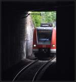 Der Talent II-Zug ist abweichend vom Normalfall hier auf dem S-Bahngleis der S2 und S3 unterwegs und wird vermutlich auf Gleis 1 einfahren, da Gleis 2 durch eine dort wendende S-Bahn blockiert ist.