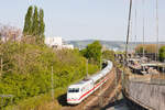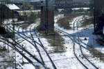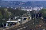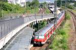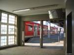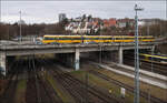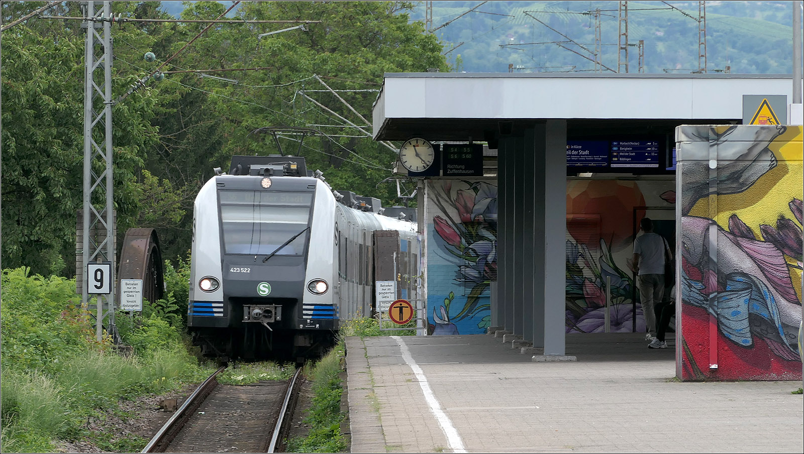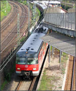 ... fährt ein schwarz-weiße S-Bahn der Linie S6 nach Weil der Stadt in die den Stuttgarter Nordbahnhof ein.