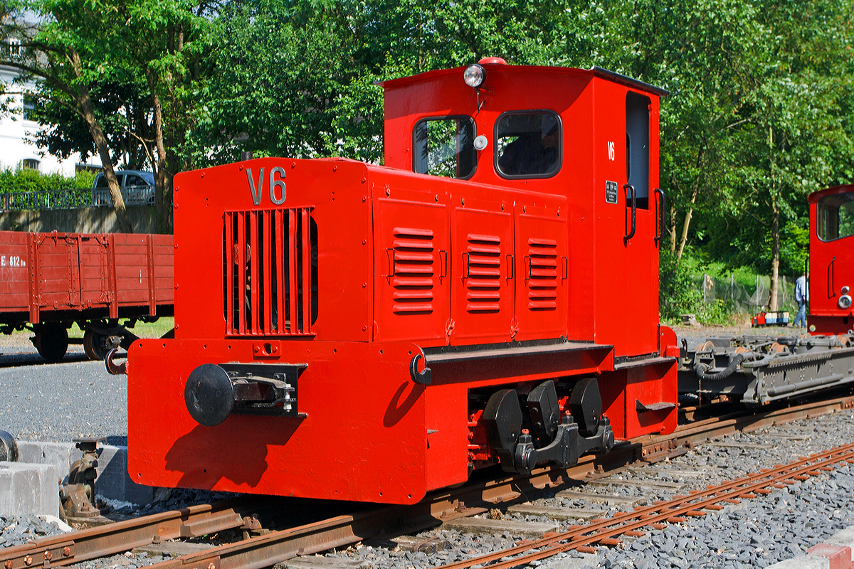 Die Diesel-Schmalspur-Lok V 6 (LKM 249238) vom Museum Asbach (Westerwald) eine LKM Ns 3h, hier am 08.06.2014.