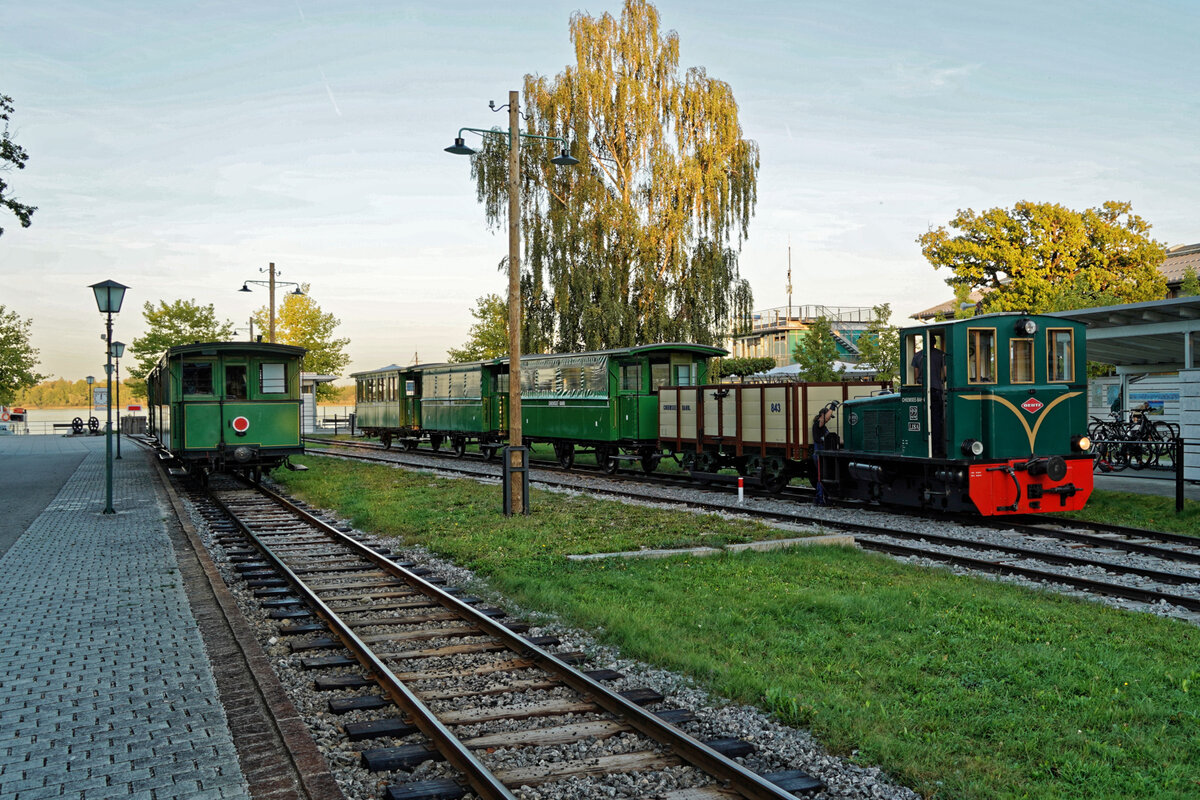 Lok Laura rangiert im Endbahnhof Prien am 26.5.2022 wieder auf die vordere Zugseite, um wenig später zurück nach Stock am Chiemsee fahren zu können.
