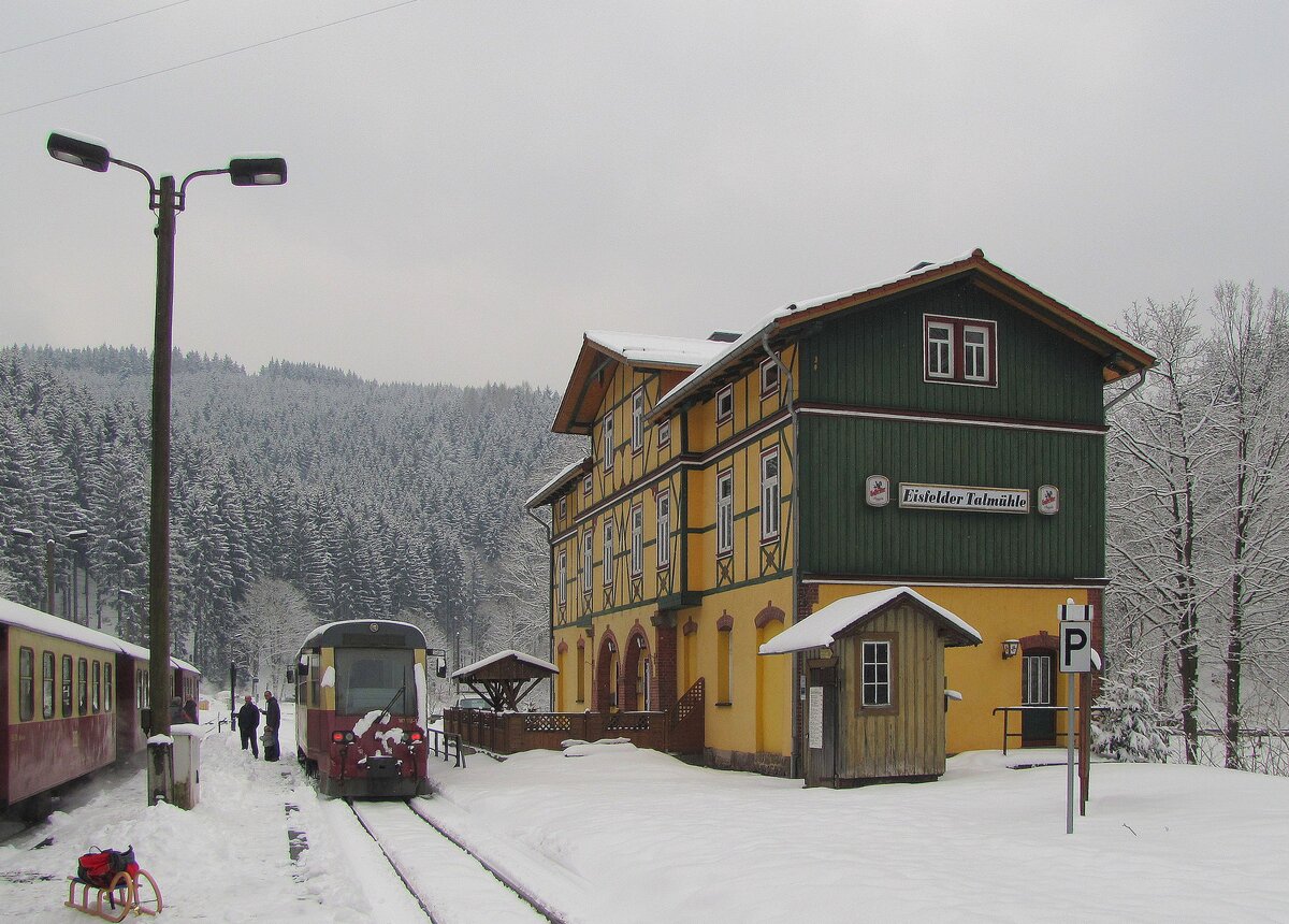 Im Bahnhof Friedrichshöhe kam es zur Zugkreuzung mit 187 015, und da der Bahnhof eigentlich "Winterschlaf" hielt,also die Einfahrt von Albrechtshaus her gesperrt war, bewachte der Heizer die Weiche höchst selbst und sicherte sie zusätzlich mit vollem Körpereinsatz.