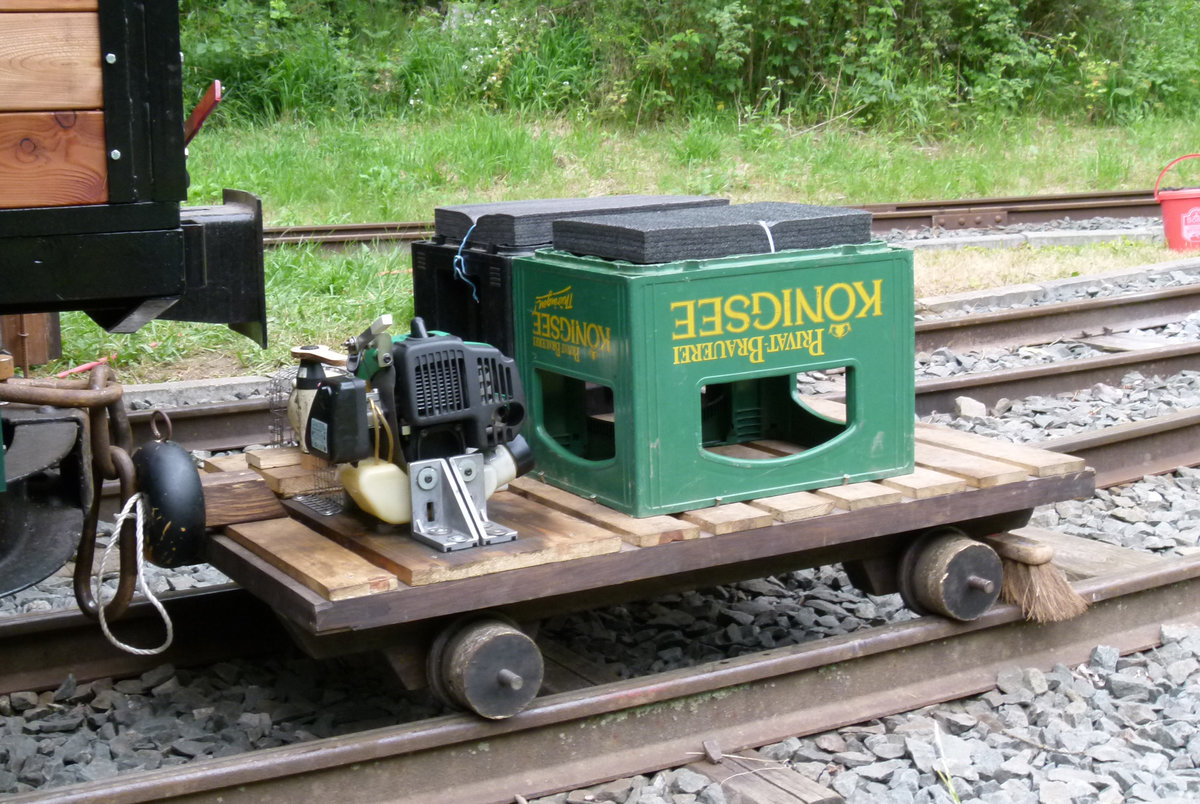 Schienenmoped GKR Typ2, auch als "Schienenschwalbe" bezeichnet, am 23.10.2016 vor dem Museumslokschuppen des "Freundeskreises Selketalbahn" in Hasselfelde, aufgenommen im Rahmen einer Sonderzugveranstaltung der IG HSB. Die Bezeichnung als "Schwalbe" ist eigentlich nicht ganz korrekt, denn dieser Gleiskraftroller wurde auf Basis des Vorgängers der KR51 "Schwalbe", einem KR50 "Spatz", welche allerdings beide im Fahrzeugwerk "Simson" Suhl hergestellt wurden, gefertigt. (Bild 2)