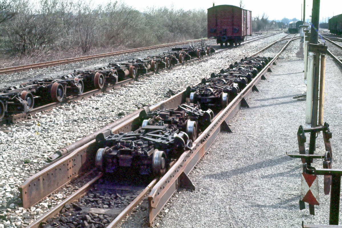 Rangierfahrt von 199 861 mit Sonder-GmP am 21.04.2018 im Bahnhof Drei Annen Hohne. Die Lok hat den Zug soeben aus Gleis 3 gezogen und schiebt ihn jetzt auf Gleis 5, wo der Rollwagen zur Abstellung kommt.
