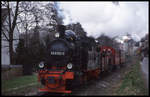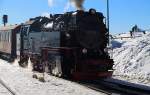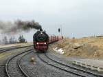 99 7237 mit P8932 nach Wernigerode am Vormittag des 19.10.2018 abfahrbereit im Bahnhof Brocken. Bevor es losgeht, bekommt die Lok noch eine kleine Durchsicht.