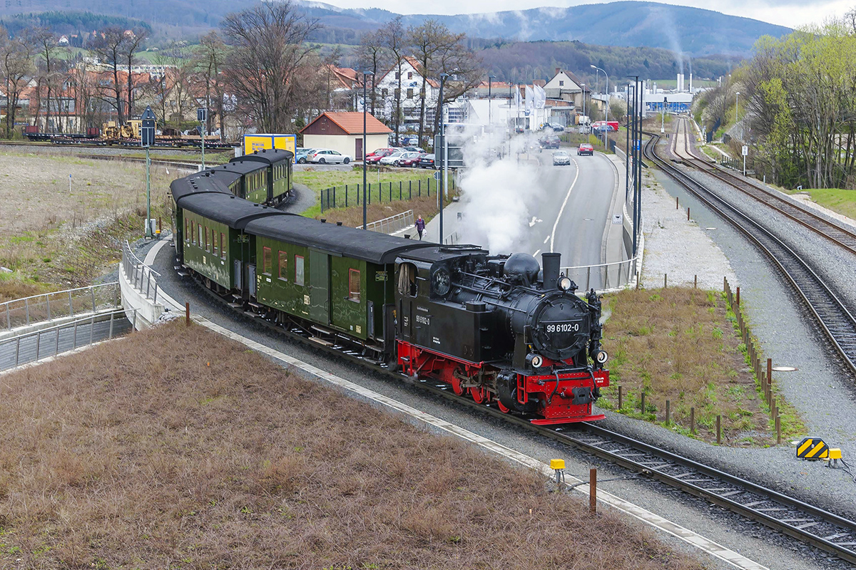 99 6001 am Morgen des 12.10.18 kurz vor Bad Suderode.