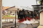 Im Schmalspurbahnhof Wernigerode rangiert die 99 7237-3 vor den Zug nach Nordhausen Nord, 19.10.2025