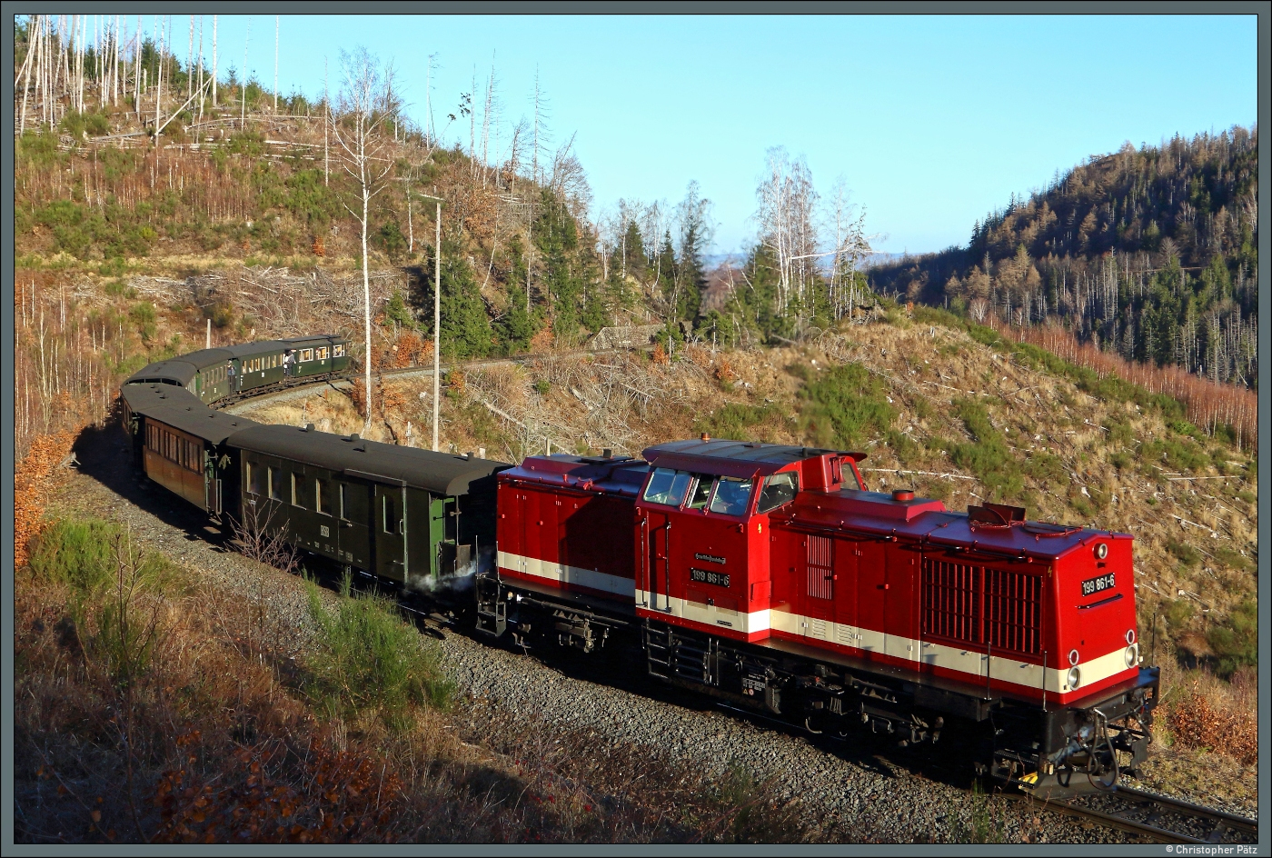 Am 22.7.16 war mein letzter Tag der Ost Rundreise und ich entschloss mich wie am tag zuvor den Triebwagen noch ein letztes Mal zu fotografieren. Hier durchfährt er die berühnte Kirchstraße wo ein kruzer Teil der Strecke wie die Straßenbahn über die Straße führt. Am nächsten Tag reiste ich dann wieder gen Heimat auch wenns schwer war den Osten wieder zu verlassen.