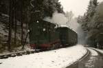 Am 17.10.09 rangiert 199 009-2 im dichten Schneetreiben im Bahnhof  Steinbach.