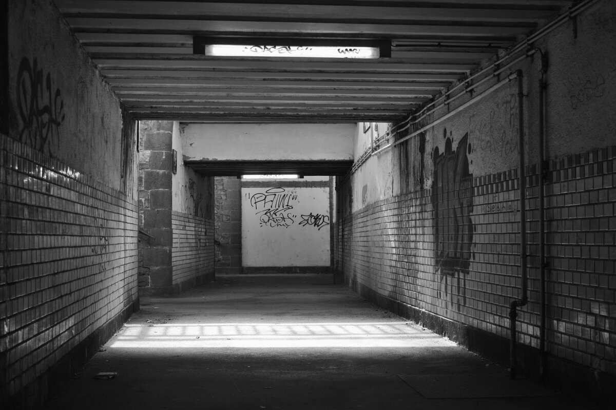 Auf Wunsch von Andreas habe ich das Bild der Unterführung in Assmannshausen nochmal in schwarz/weiß umgewandelt. Das Lichtspiel bringt eine tolle Stimmung in die sonst wenig einladende Unterführung.