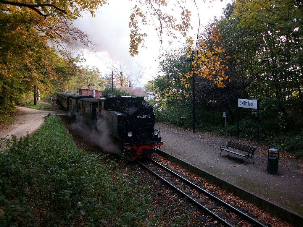 99 4011 durchfuhr ohne Halt den Haltepunkt Sellin West am 23.Oktober 2010,