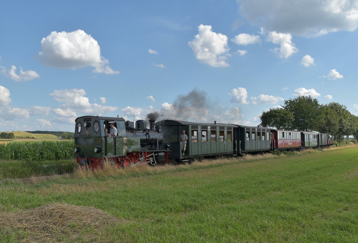 Die Jung Schmalspur Dampflok 20 "Haspe" der Selfkantbahn bzw. Interessengemeinschaft Historischer Schienenverkehr e. V. (IHS) zieht ihren Personenzug am 31 März 2013 bei Birgden in Richtung Gillrath.