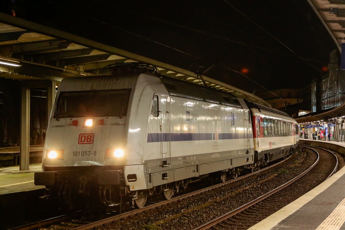 DB 101 057-8  Europa  mit EC6 in Wuppertal Hbf, Januar 2025.