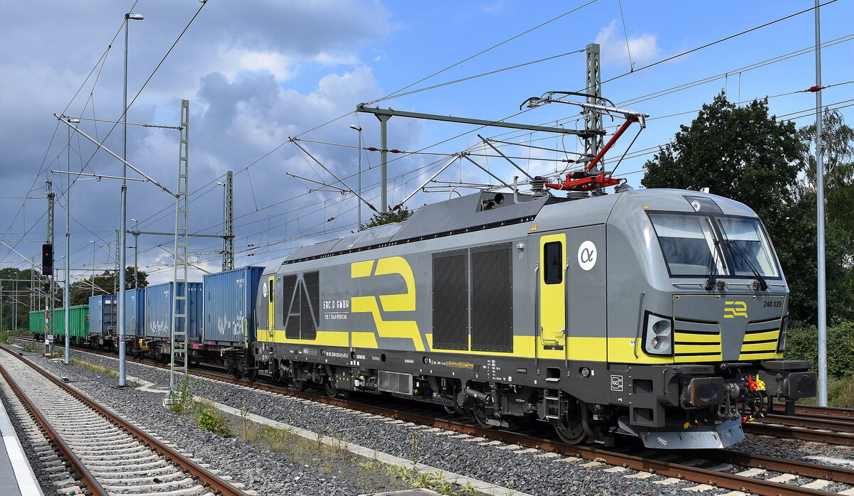 ERC.D - European Railway Company Deutschland GmbH, Nürnberg [D] mit der Alpha Trains Vectron Dual Lok "248 039" [NVR-Nummer: 90 80 2248 039-0 D-ATLU] und einem Überführungszug mit fabrikneuen Hochbordwagen für die On Rail GmbH am 31.08.23 Vorbeifahrt Bahnhof Leipzig-Thekla.