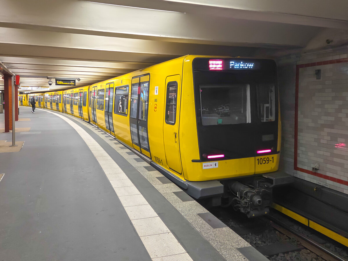U-Bahn Berlin Zug Ik 1059-1 mit der U2 nach Pankow in der Station Alexanderplatz, 13.03.2026.