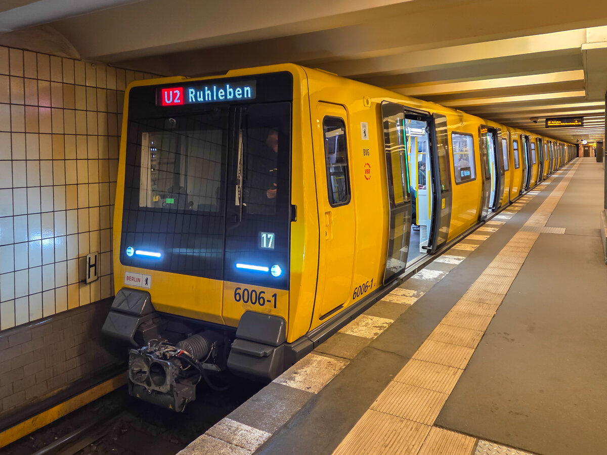 U-Bahn Berlin Zug Jk 6006-1 mit der U2 nach Ruhleben in der Station Hausvogteiplatz, 13.03.2026.