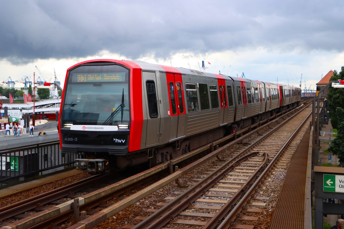 Hochbahn Hamburg Alstom DT5 Wagen 436 am 13.07.25 am Baumwall von einen Gehweg aus fotografiert