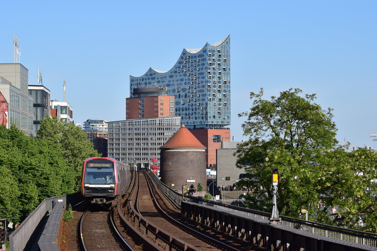 DT5 392 erreicht in Kürze als U3 die Haltestelle Landungsbrücken.