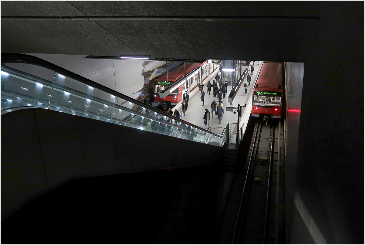 Auf der U-Bahn Linie 3 liegt der Haltepunkt Opernplatz in Nürnberg auf Höhe der Stadtmauer, so dass normales Tageslicht auf den Bahnsteig fällt. Die Züge werden automatisch gesteuert, so dass schon kleine Fahrgäste quasi das Fahrerlebnis als Lokführer genießen können!